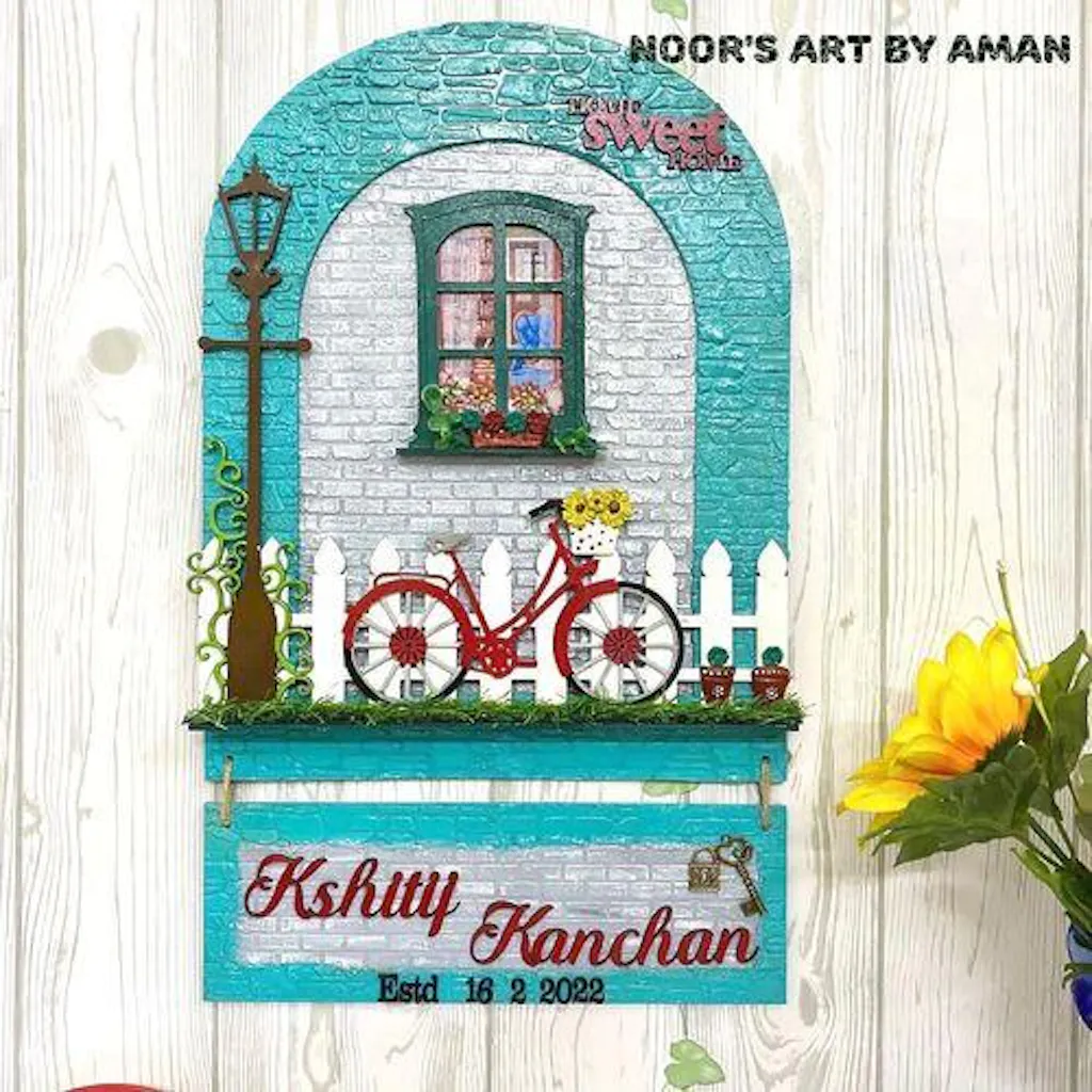 An outstanding Arch shaped nameplate set with so many embellishments to make it beautiful and uniques for nameplates n wall decor for your home, office or any other institution. You can use miniatures, decoupage, painting, mix-media, clay, beads n laces, or any other technique upon these as per your choice…come with back hook to hang…