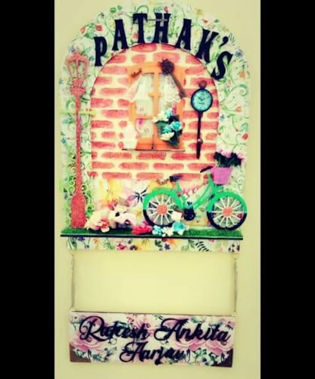 An outstanding Arch shaped nameplate set with so many embellishments to make it beautiful and unique for nameplates n wall décor for your home, office or any other institution. You can use miniatures, decoupage, painting, mix-media, clay, beads n laces, or any other technique upon these as per your choice…come with back hook to hang…